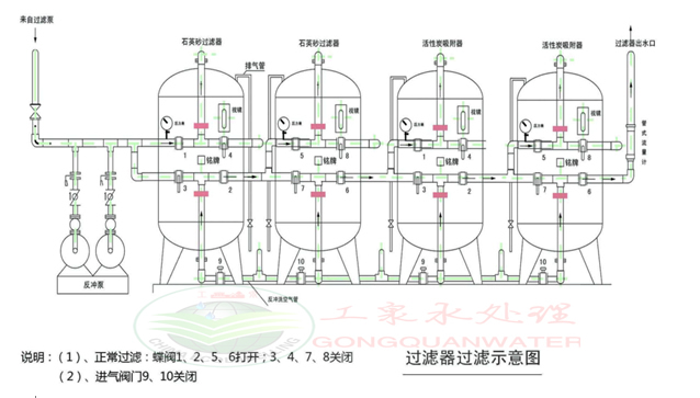 石英砂過濾是去除水中懸浮物最有效手段之一,是污水深度處理、污水回用和給水處理中重要的單元。其作用是將水中已經(jīng)絮凝的污染物進(jìn)一步去除,它通過濾料的截留、沉降和吸附作用,達(dá)到凈水的目的。